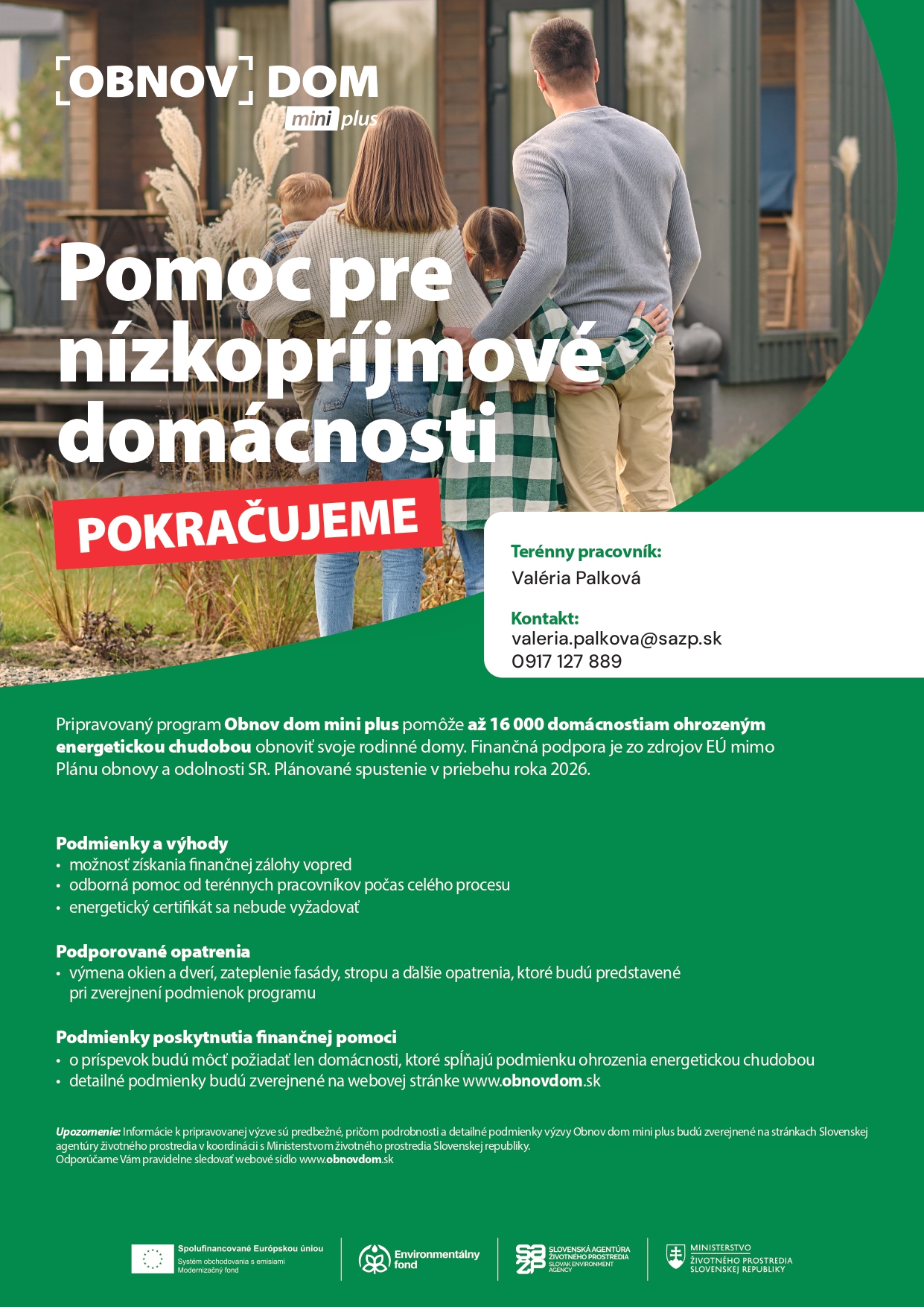 Slovenská agentúra životného prostredia pripravuje novú výzvu Obnov dom mini plus určenú pre domácnosti ohrozené energetickou chudobou až pre 16 000 rodinných domov.